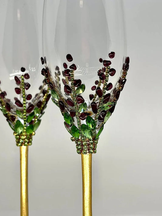 Wedding Toasting Flutes with Natural Garnet Stones | Burgundy Wildflower
