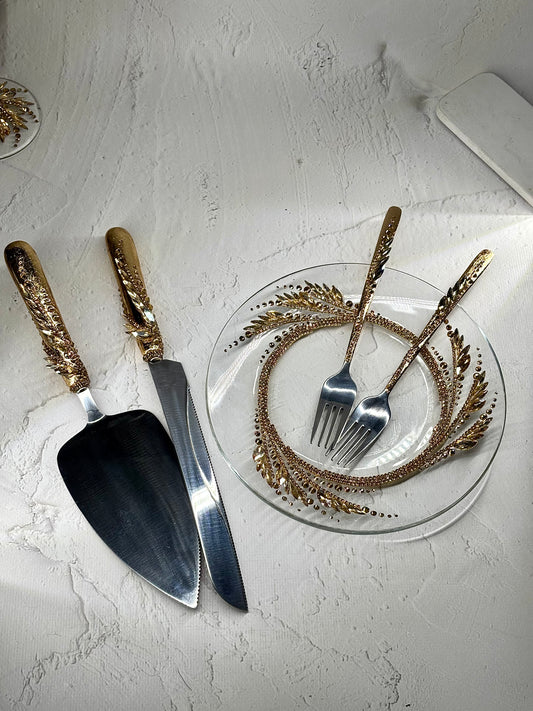 Wedding Plates Set and Cake Knife & Server by collection "Golden Hypnosis"
