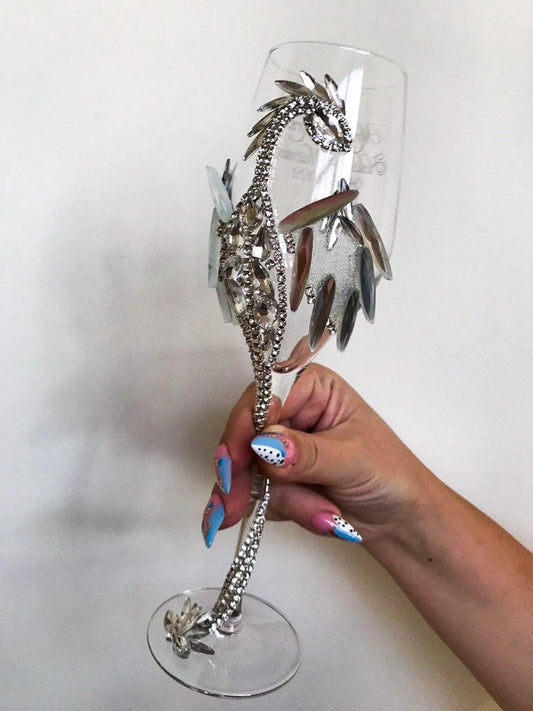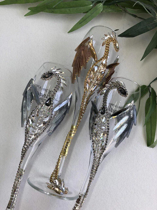 Custom Champagne Flutes from the "Emerald Hypnosis" collection