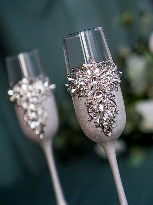 Crystal Silver Toasting Glasses for Wedding