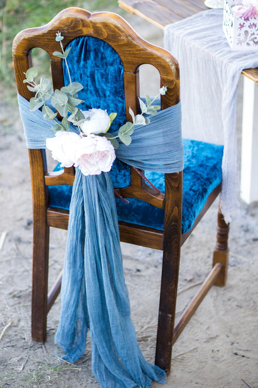 Dusty Blue Cotton Gauze Table Runner for Boho Wedding Decor ~35 1/2 '' (90 cm) width, Bulk Gauze Runner, Cheesecloth Fabric, Colored Guaze Material, Custom Size Runner