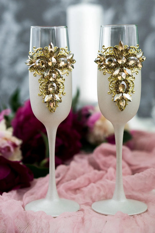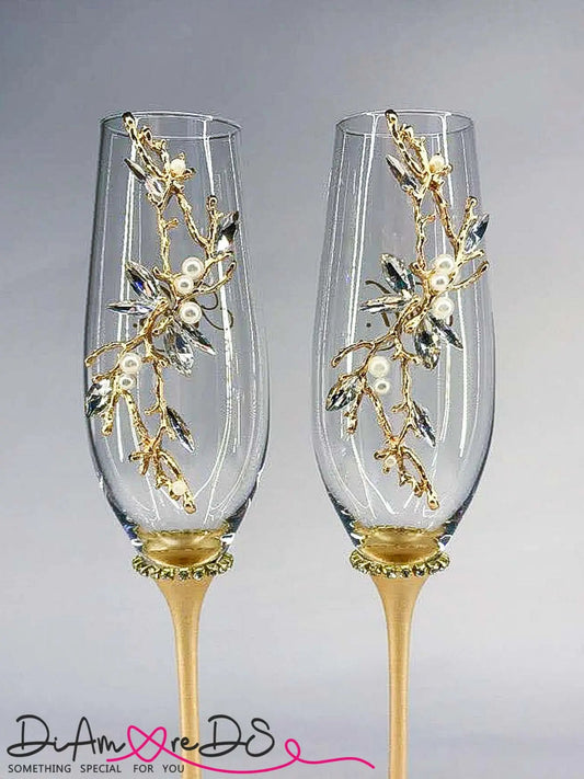 Fiora Gold Personalized Wedding Glasses - Toast to Elegance