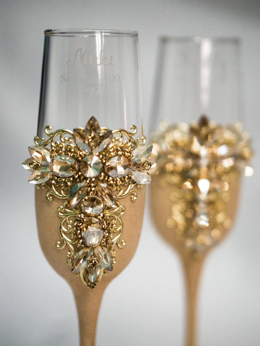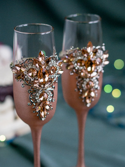 Gloria Rose Gold Personalized Wedding Champagne Glasses Set