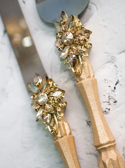 Gloria Gold Wedding Cake Server and Cake Knife Set - Personalized Elegance