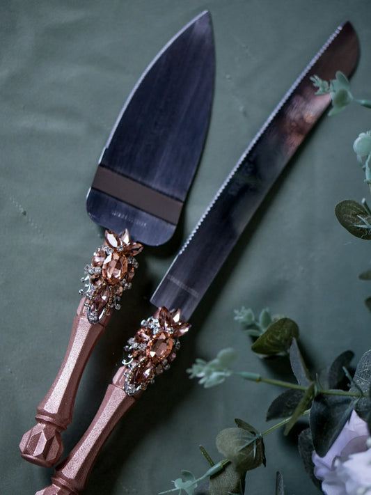 Gloria Rose Gold Crystal Personalized Cake Knife and Server Set