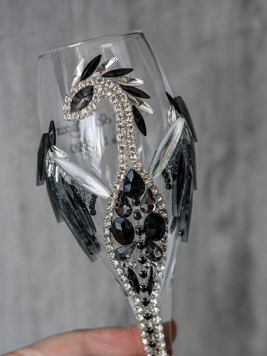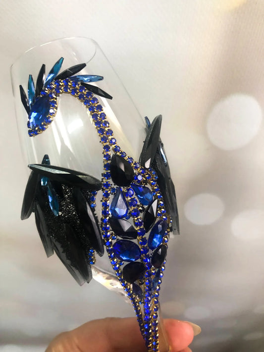 Stellar Sapphire: Rhinestone Dragon Champagne Flute