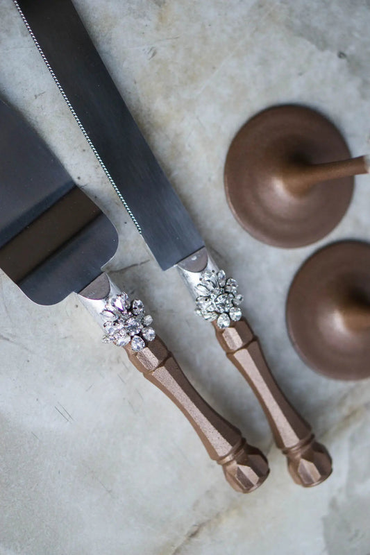 Elegant Chocolate Wedding Cake Servers & Toasting Flutes - Amanda Collection