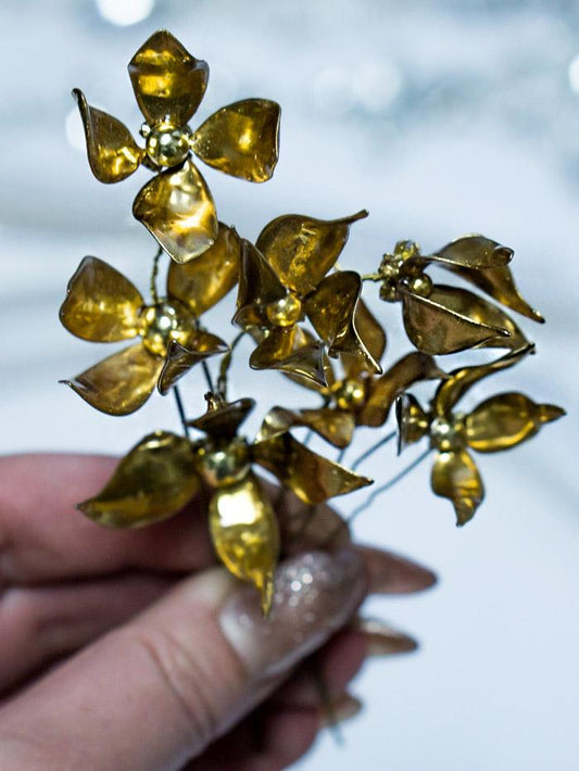 Set of 4 Golden Clematis Flower Bridal Hair Pins