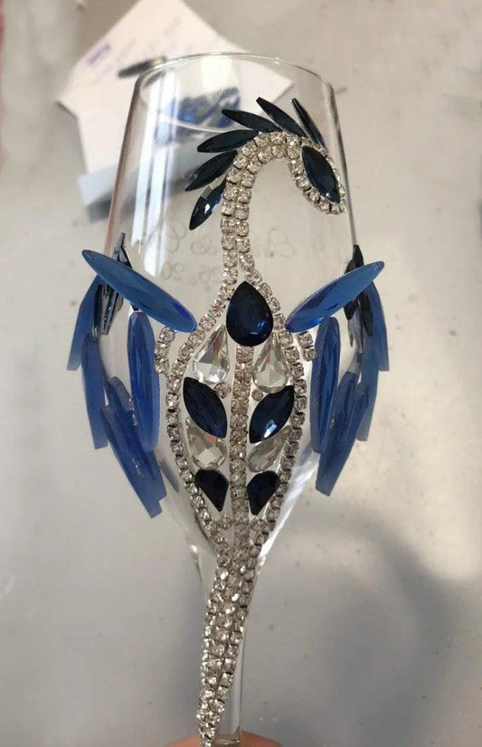 Gold & Royal Blue Wedding Toasting Flutes Set | Venice Collection