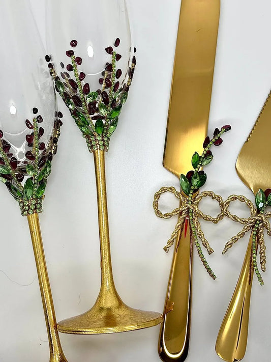 Champagne Glasses and Wedding Cake Cutting Set | Virelia Collection