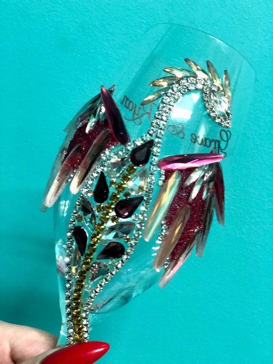 Burgundy Bliss: Dragon-Adorned Champagne Flute