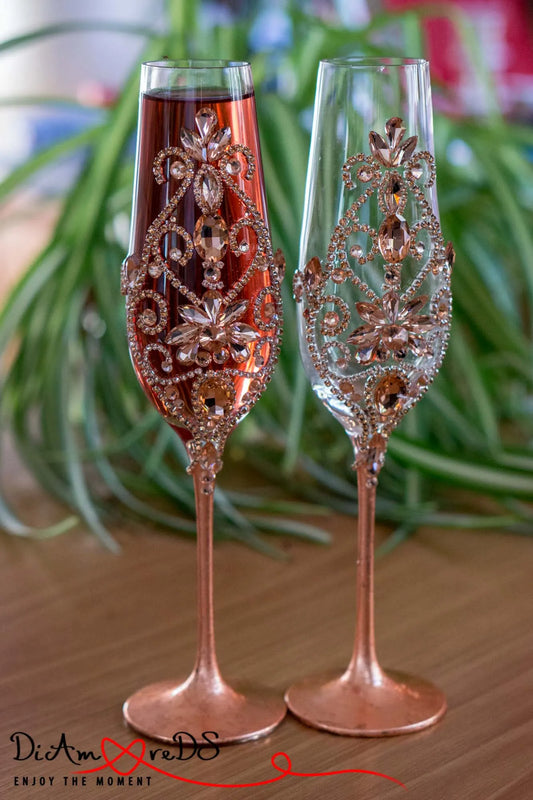 Toasting Flutes, Cake Cutter Sets, Wedding Cake Plate & Forks | Lustrous Rose Gold