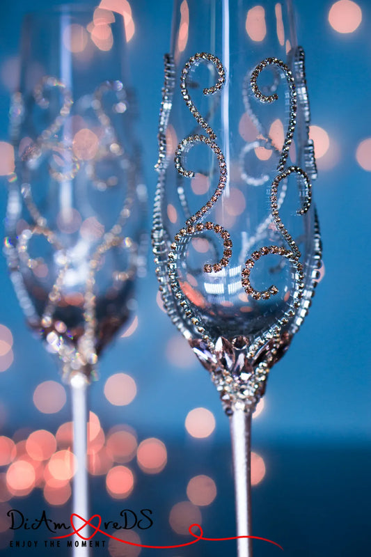 Rose Gold Wedding Champagne Flutes | Venice Collection