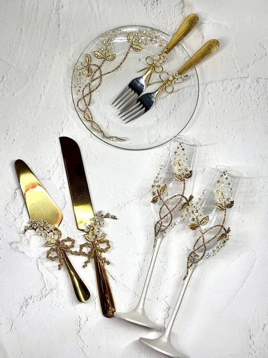 Cake Cutting Set and Wedding Martini Glasses by collection "Golden Hypnosis"