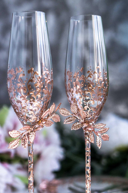 Rose Gold Filigree Wedding Flutes Set