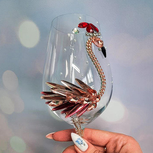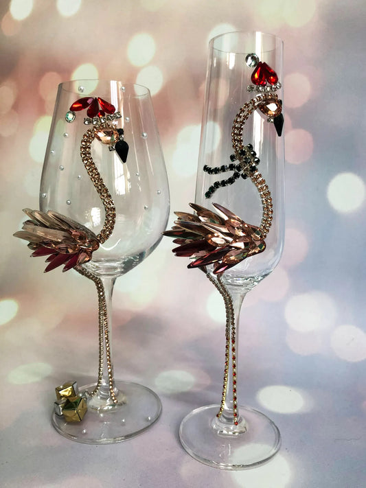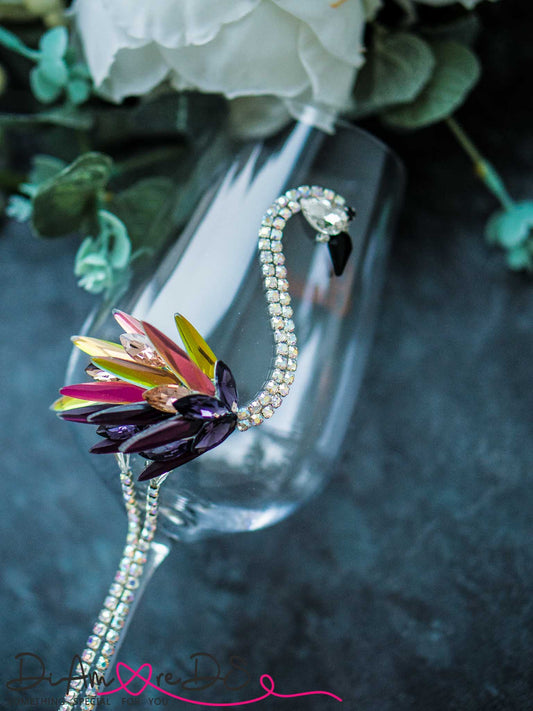 Raise a toast with our exquisite Flamingo Wine Glasses, a delightful addition to any table setting or home bar. Each glass is meticulously crafted, featuring flamingos in a loving embrace, making them ideal for romantic celebrations or as a wedding gift.