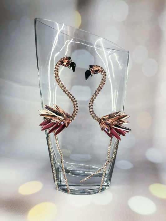 Graceful Elegance: Handcrafted Crystal Flamingo Vase