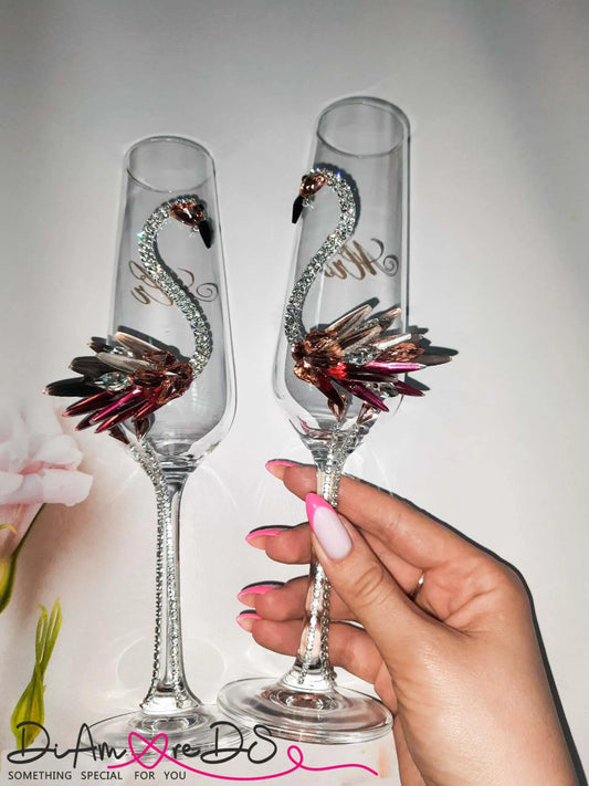 Crystal Pink Flamingo Champagne Flutes - Personalized Wine Glass