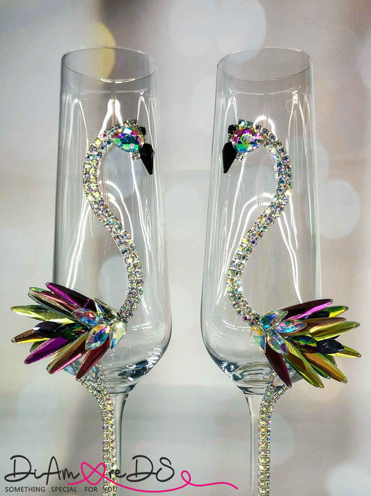 DiAmoreDS Rainbow Flamingo Champagne Glasses